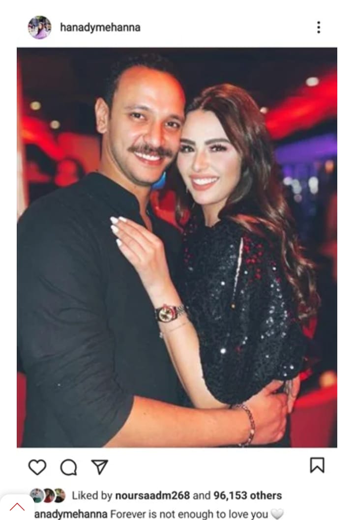 نشرت الفنانة هنادى مهنا صورة جديدة لها عبر حسابها الشخصي على موقع الصور والفيديوهات انستجرام بإطلالة جريئة برفقة زوجها الفنان أحمد خالد صالح.