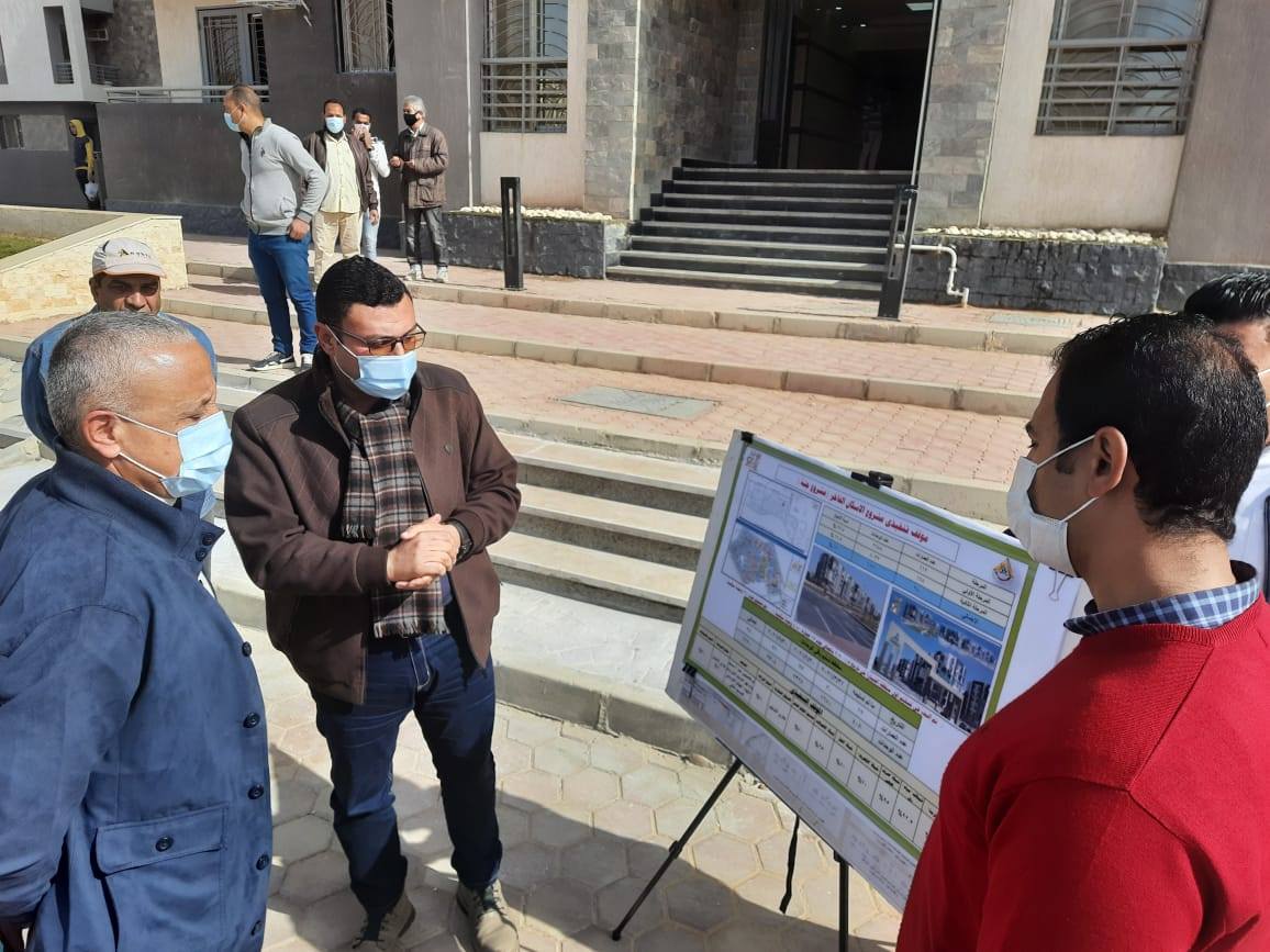 واستهل مسئولو الإسكان الجولة، بتفقد موقع مشروع سكن لكل المصريين بإجمالى 2112 وحدة سكنية (88 عمارة) على مساحة 69 فداناً، والجاري البدء في تنفيذه بالقطاع الشمالي للمدينة بجوار منطقة ال2000 قطعة، والمطل على الطريق الدائري الأوسطي.