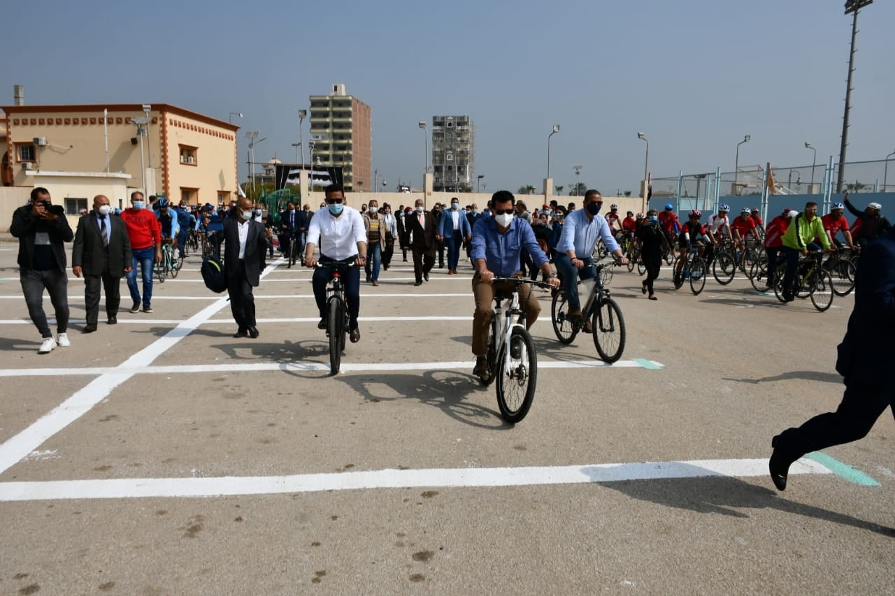 وفي نهاية جولته التفقدية بالنادي شارك الدكتور أشرف صبحي وزير الشباب والرياضة 200 شاب من محافظة الفيوم في ماراثون للدراجات الهوائية.