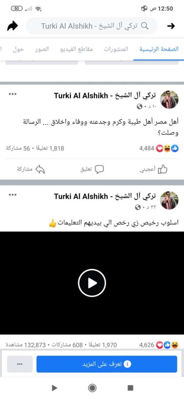 كما كتب آل الشيخ بعد ذلك عبر "فيسبوك" أيضا: "أهل مصر أهل طيبة وكرم وجدعنه ووفاء وأخلاق.. الرسالة وصلت؟".