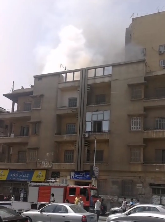 عاجل| حريق هائل أعلى أحد العقارات بالمنيل