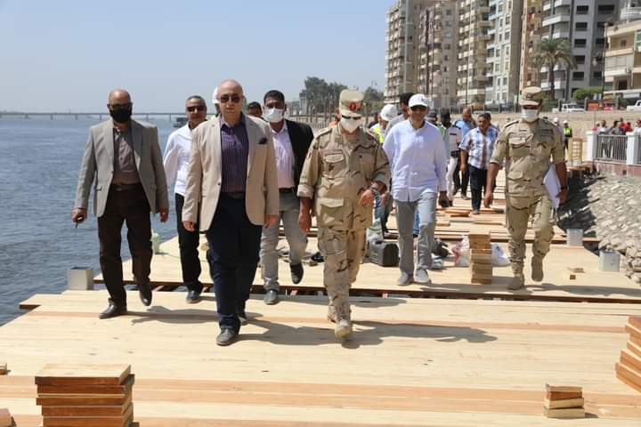 حيث تابع المحافظ الأعمال الجاري تنفيذها بالجزء السفلي من الكورنيش بطول 1500متراً في المسافة من مركز المؤتمرات حتى نادي الكشافة البحرية والتي من المقرر الانتهاء منها خلال الفترة القليلة القادمة ،ضمن مشروع التطوير الشامل للمنطقة وتحويلها لمتنفس حضاري مميز لكافة المواطنين، ووفق تصميم فني ومعماري يحوى مكونات جمالية وترفيهية وممشى، تتضمن عناصر جمالية لإضفاء الشكل الحضاري على شاطئ النيل.