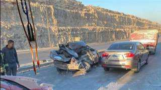 حادث مروع وإصابة شخصين في حادث تصادم بطريق الأوتوستراد بحلوان
