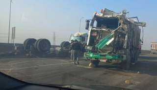 بالصور| إصطدام مقطورة بسيارة نقل على الطريق الأوسطي بحلوان