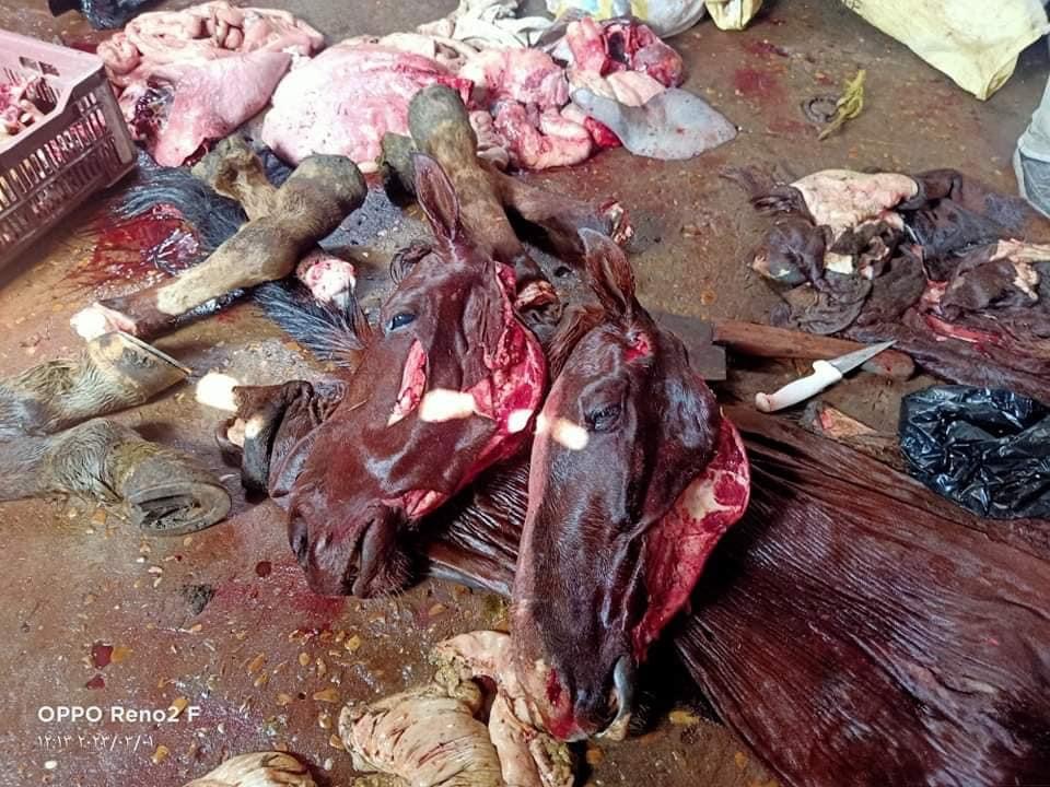 وكانت حملة من مديرية التموين في محافظة الدقهلية، تمكنت من ضبط شخص ذبح حصانين تمهيدا لبيع لحومهما في قرية برق العز التابعة لمركز المنصورة.