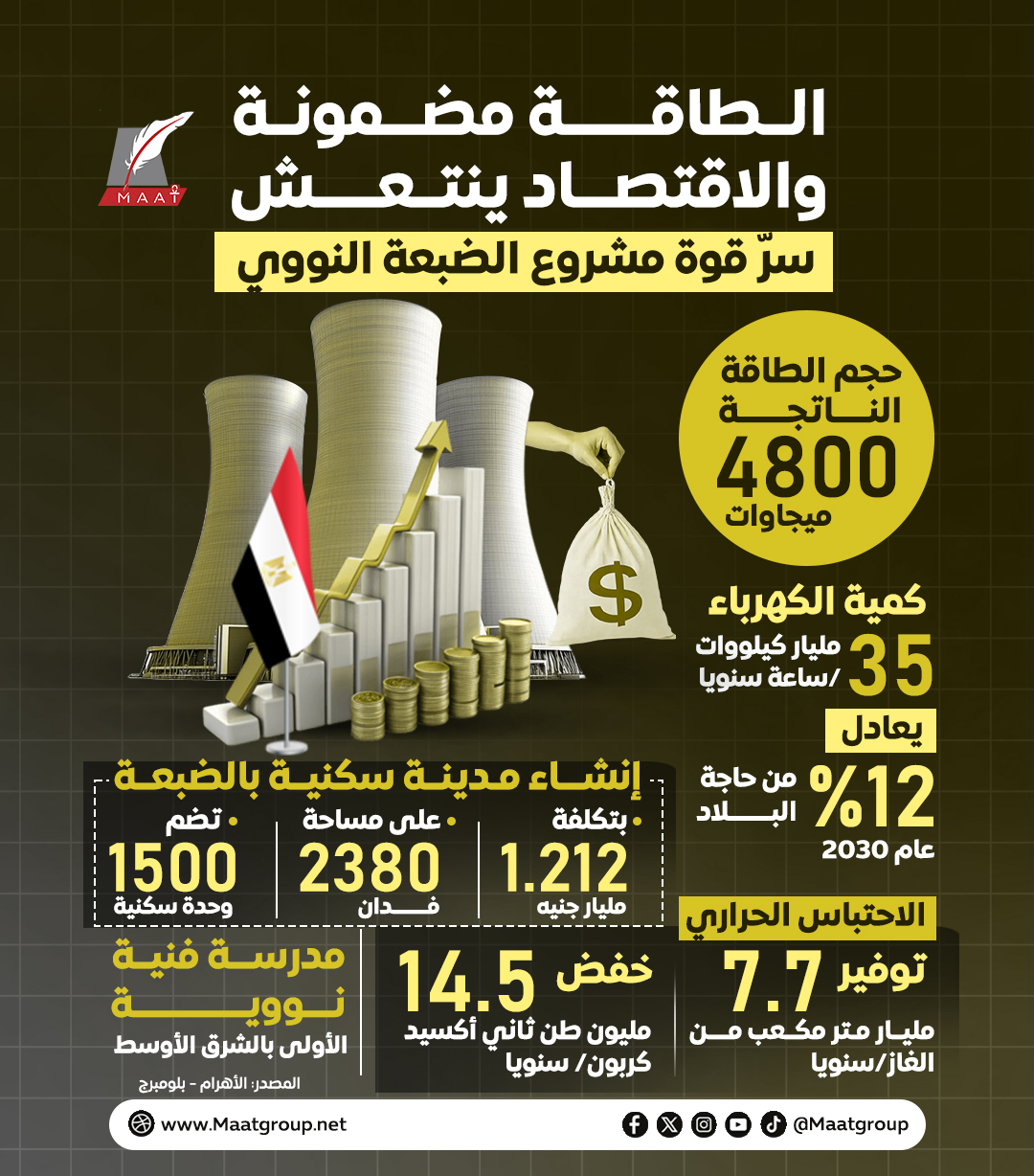 طاقة مستدامة ومشروعات عملاقة.. إنفوجراف ”ماعت” يكشف فوائد محطة الضبعة النووية
