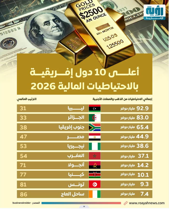أعلى 10 دول إفريقية بالاحتياطيات المالية.. ليبيا تتصدر | إنفوجراف