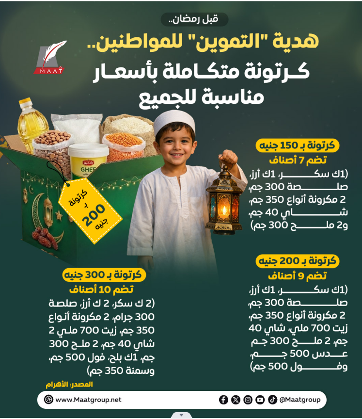 تبدأ من 150 جنيه.. ”ماعت جروب” تكشف أسعار ”كرتونة رمضان” | إنفوجراف