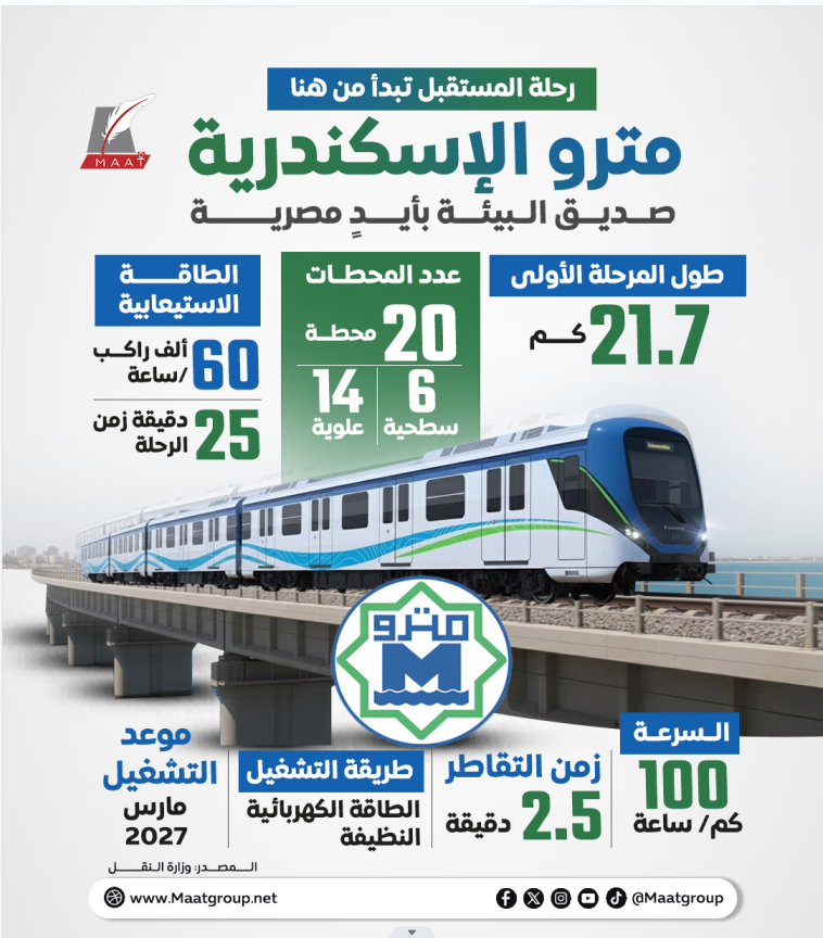 بالكهرباء النظيفة ويضم 20 محطة.. تفاصيل المرحلة الأولى بمترو الإسكندرية | إنفوجراف