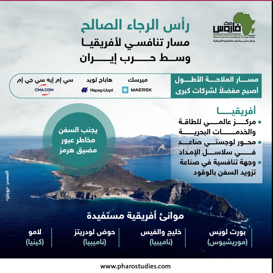 ”فاروس”: حرب إيران تعيد إحياء رأس الرجاء الصالح.. ومنافع كبيرة لأفريقيا | إنفوجراف