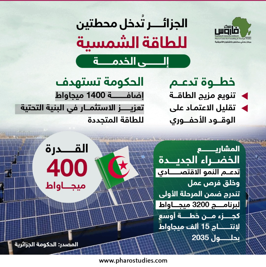 دخول محطتين للطاقة الشمسية بالجزائر حيز الخدمة | إنفوجراف لـ”فاروس”
