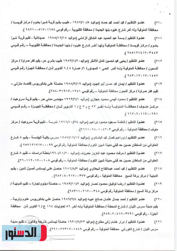 وتضمن القرار أسماء المتهمين وبياناتهم الشخصية وبعض ممتلكاتهم وفقا لبطاقة الرقم القومي.
